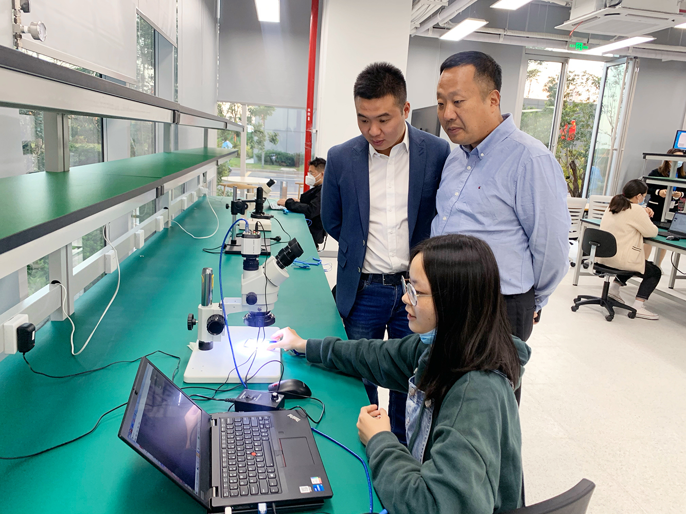 会议结束后,上海大丰商会企业家们参观了灵动的车规芯片测试验证实验室,灵动的工程师为大家详细讲解了芯片生产过程,测试与验证环节及所用的设备。并现场演示测试与验证步骤,激起了企业家们的极大兴趣。